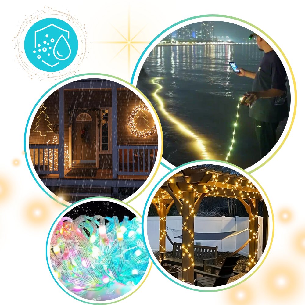 Designed with durability in mind, these 210 Music Sync USB LED Lights feature a robust IP65 waterproof rating, ensuring reliable performance in both indoor and outdoor settings. The fully sealed copper wires withstand moisture, making them perfect for garden parties, balcony decor, or festive lighting in all weather conditions. While the LED strands are waterproof, care must be taken to protect the controller, adapter, and USB port from water exposure to maintain optimal functionality. This thoughtful design ensures long-lasting enjoyment no matter where you use them.