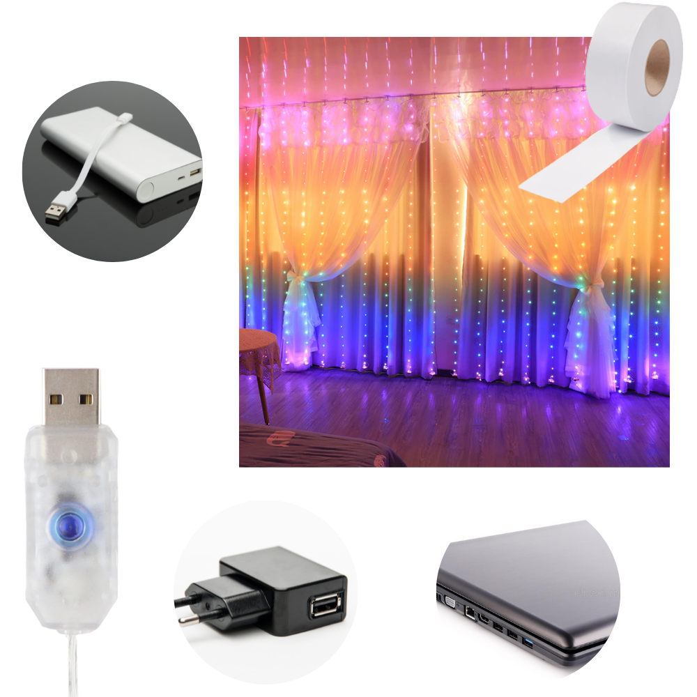 This string curtain of fairy lights is straightforward to install. It’s very lightweight so you won’t need to install heavy-duty hooks or anything. You can fix it to the curtain rod using sticky tape, or to the top of the window frame. Unroll the thin copper wires with the LED lights and let them hang down. The curtain has a USB plug to power the LED lights. Please note: a power adapter isn’t included. Use a spare phone adapter, or plug it into a power bank or laptop USB port. The copper wires don’t heat up, even after constant use. So this string curtain is safe to install against curtain fabric or in children’s bedrooms.