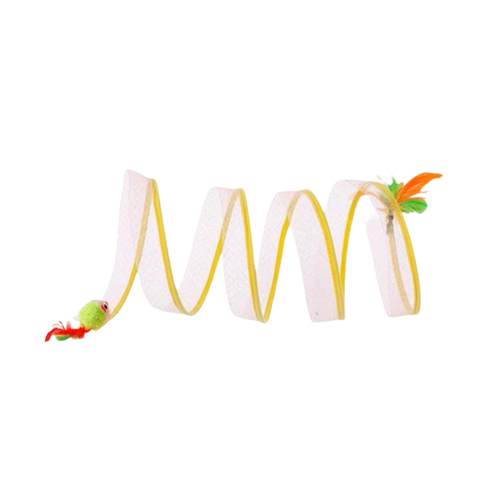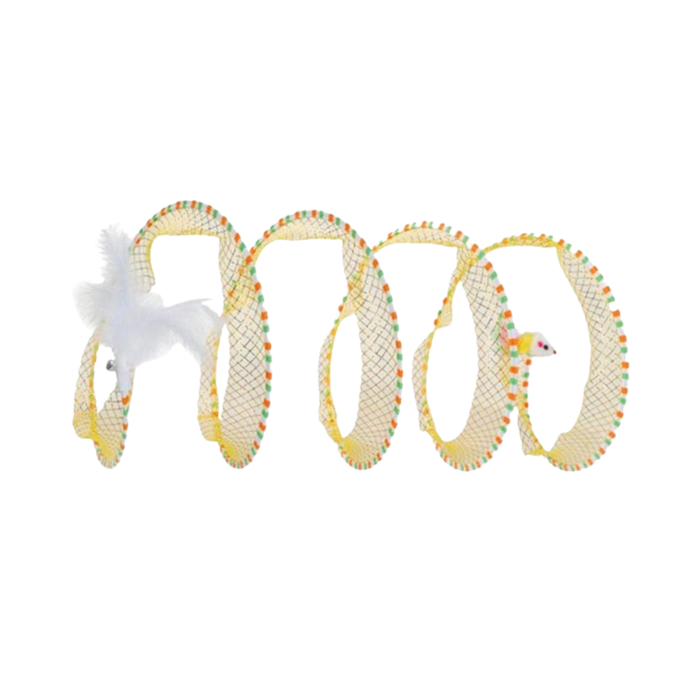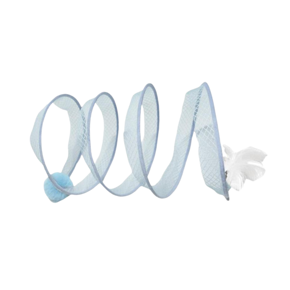 To address the common issue of feline inactivity and its associated problems, the Interactive Compact Cat Tunnel emerges as an innovative solution. Its unique spiral design and playful hanging toys at each end ignite your cat's curiosity and playfulness, offering an interactive experience that counters boredom effectively. This toy is tailored to cater to various feline playstyles, ensuring continuous engagement and providing a stimulating environment that keeps your cat active, entertained, and mentally stimulated, thus fostering a joyful and energetic household pet.
